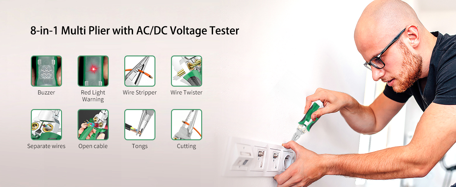 8-in-1 Voltage Tester Electrical Plier Electrician Tool For Twisting Wires Splitting Wires Voltage Tester